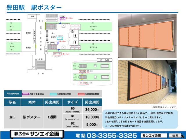 この度は、JR豊田駅の駅貼りポスター(駅に貼るポスター)のご案内です。
