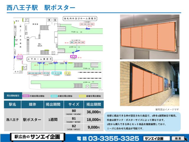 JR西八王子駅 駅ポスター掲示場所および料金表