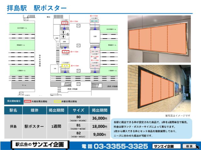 この度は、JR拝島駅の駅貼りポスター(駅に貼るポスター)のご案内です。