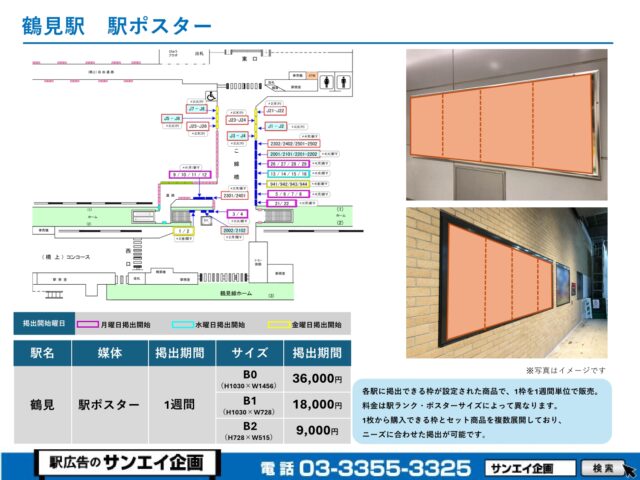 JR鶴見駅 駅ポスター掲示場所および料金表