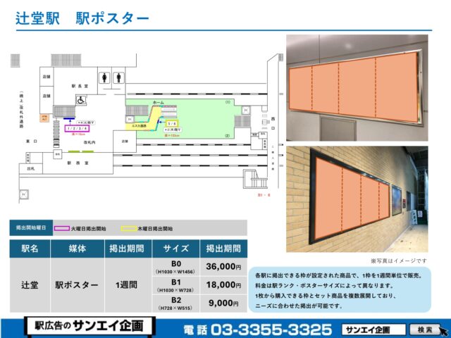 JR辻堂駅 駅ポスター掲示場所および料金表