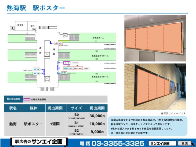 JR熱海駅 駅ポスター掲示場所および料金表