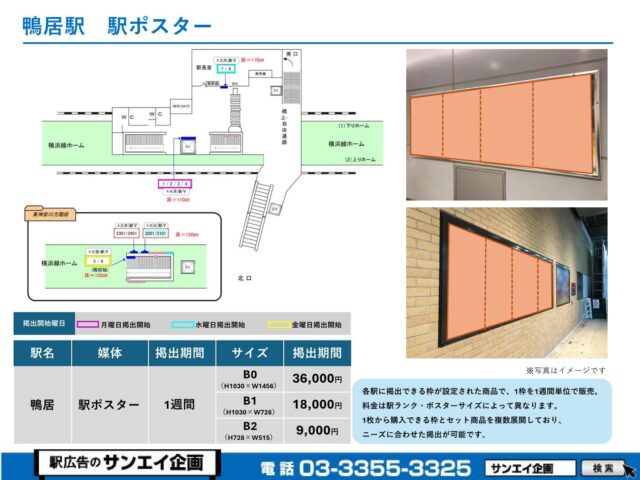 JR鴨居駅 駅ポスター掲示場所および料金表