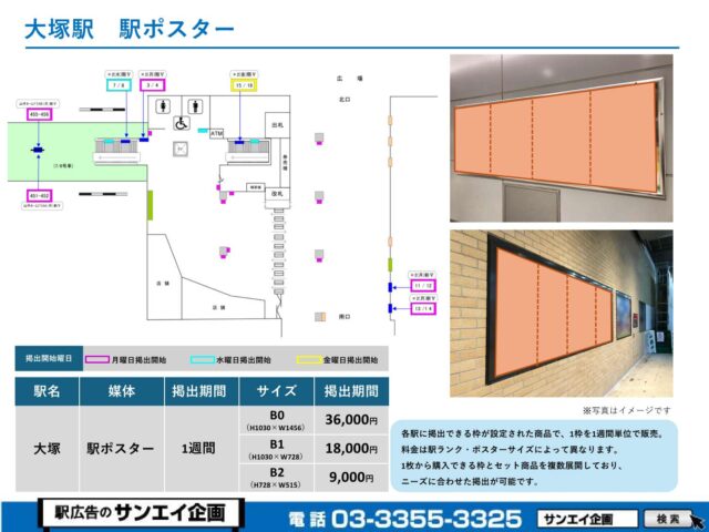 JR大塚駅 駅ポスター掲示場所および料金表