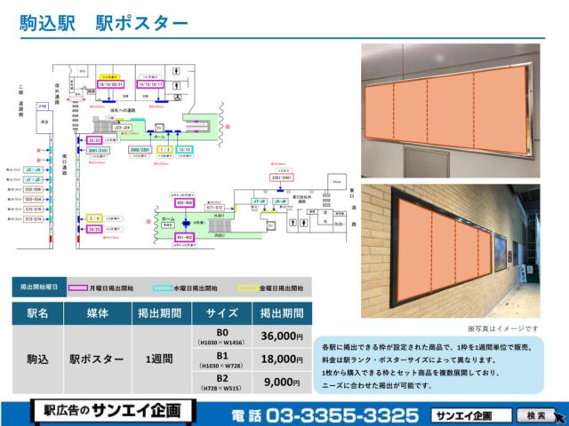JR駒込駅 駅ポスター掲示場所および料金表