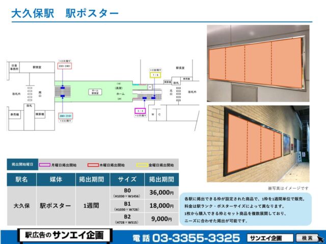 この度は、JR大久保駅の駅貼りポスター(駅に貼るポスター)のご案内です。