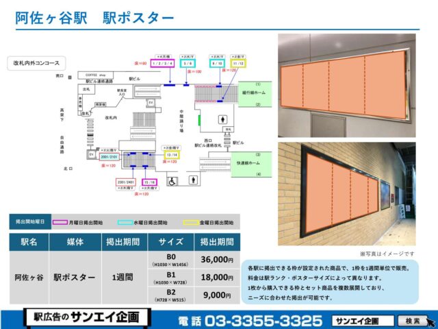 JR阿佐ヶ谷駅 駅ポスター掲示場所および料金表