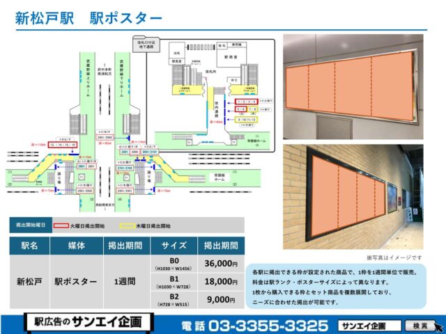 JR新松戸駅 駅ポスター掲示場所および料金表