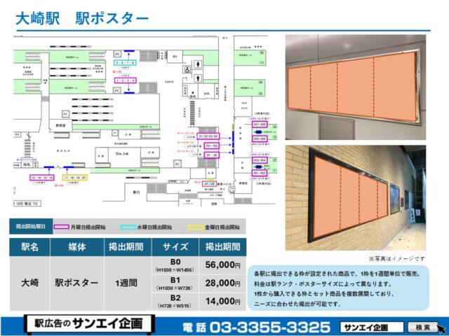 この度は、JR大崎駅の駅貼りポスター(駅に貼るポスター)のご案内です。