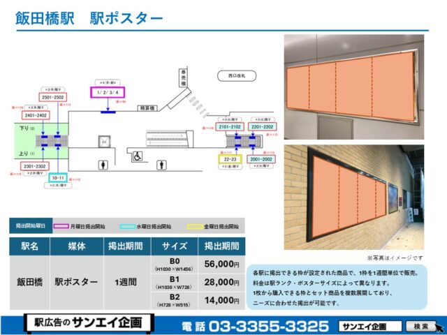 JR飯田橋駅 駅ポスター掲示場所および料金表