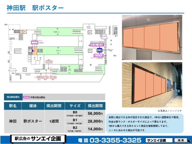 この度は、JR神田駅の駅貼りポスター(駅に貼るポスター)のご案内です。