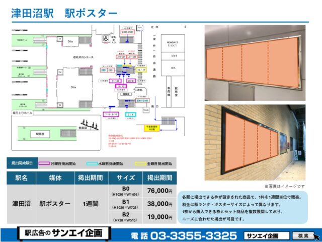 JR津田沼駅 駅ポスター掲示場所および料金表