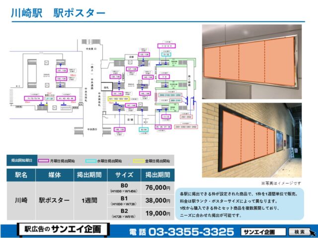 JR川崎駅 駅ポスター掲示場所および料金表