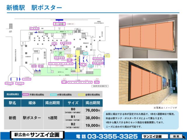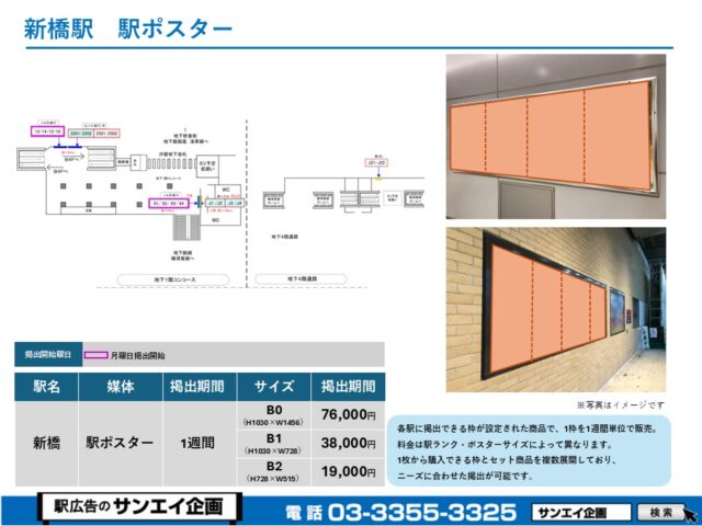 JR新橋駅 駅ポスター掲示場所および料金表