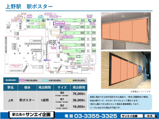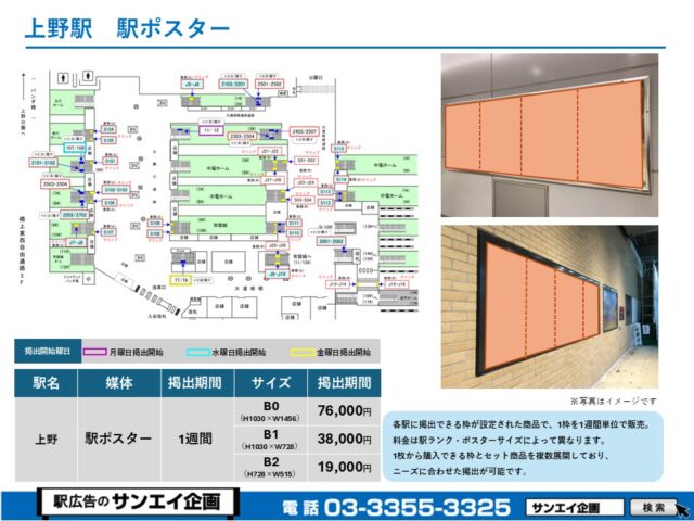 JR上野駅 駅ポスター掲示場所および料金表