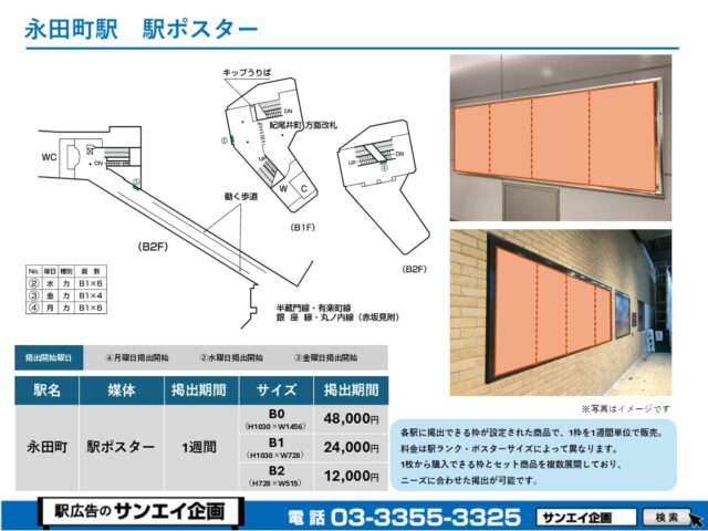 東京メトロ南北線 永田町駅 駅ポスター掲示場所および料金表
