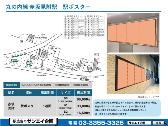 東京メトロ銀座線 赤坂見附駅 駅ポスター掲示場所および料金表