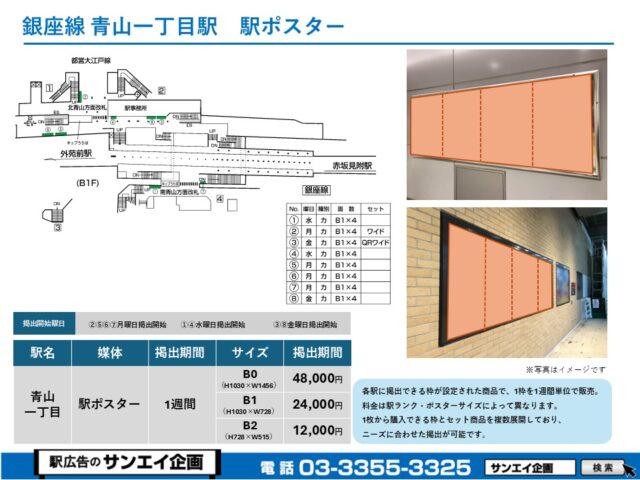 東京メトロ銀座線 青山一丁目駅 駅ポスター掲示場所および料金表