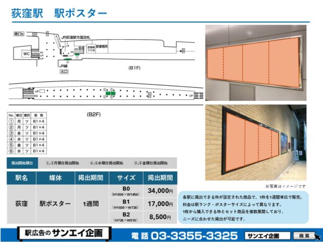 東京メトロ丸の内線 荻窪駅 駅ポスター掲示場所および料金表