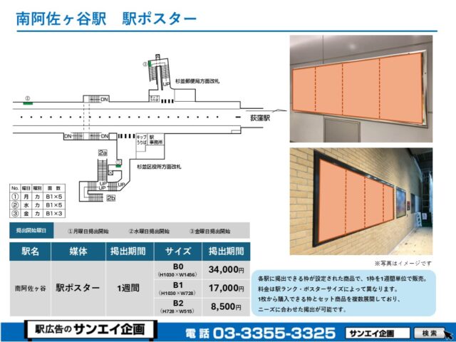 この度は、東京メトロ丸の内線 南阿佐ヶ谷駅の駅貼りポスター(駅に貼るポスター)のご案内です。