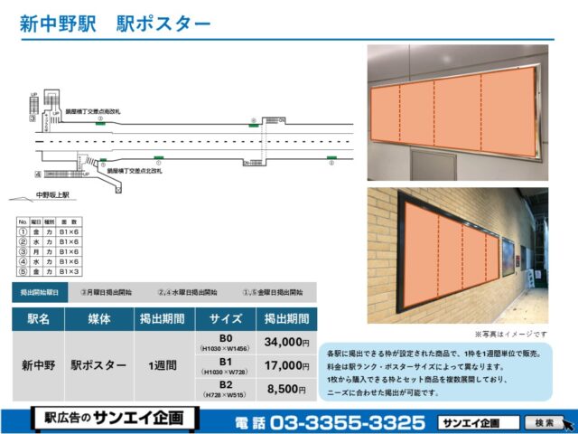 この度は、東京メトロ丸の内線 新中野駅の駅貼りポスター(駅に貼るポスター)のご案内です。