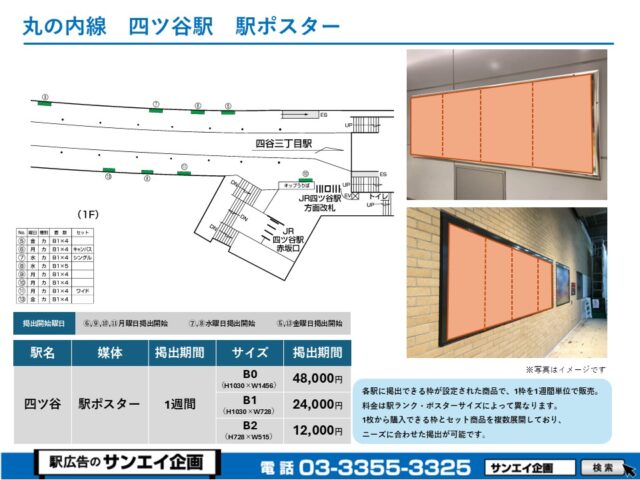 この度は、東京メトロ丸の内線 四ツ谷駅の駅貼りポスター(駅に貼るポスター)のご案内です。