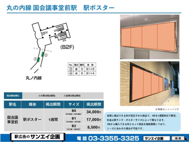この度は、東京メトロ丸の内線 国会議事堂前駅の駅貼りポスター(駅に貼るポスター)のご案内です。