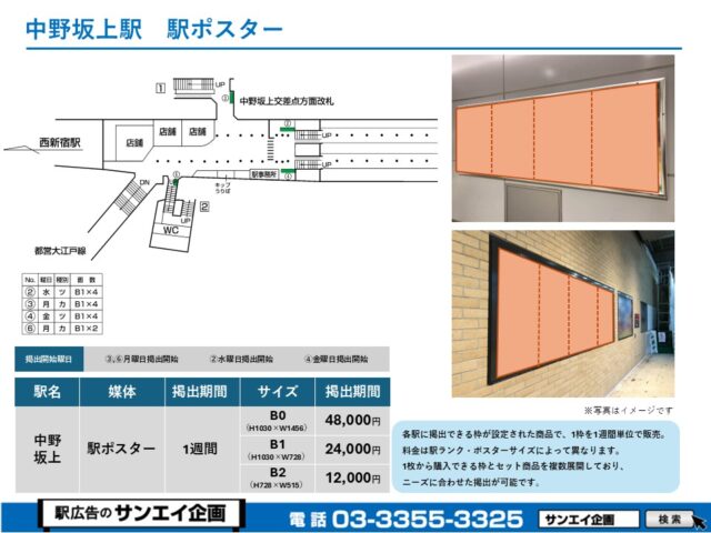東京メトロ丸の内線 中野坂上駅 駅ポスター掲示場所および料金表