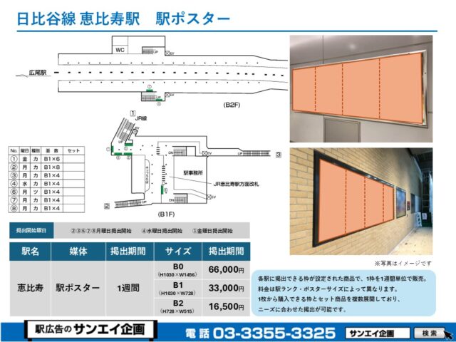 この度は、東京メトロ日比谷線 恵比寿駅の駅貼りポスター(駅に貼るポスター)のご案内です。