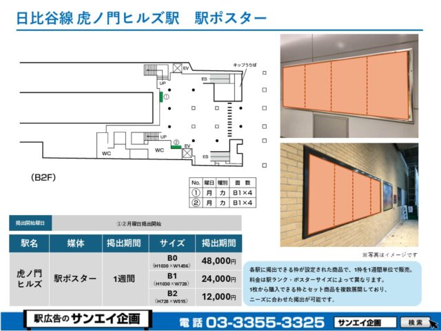 この度は、東京メトロ日比谷線 虎ノ門ヒルズ駅の駅貼りポスター(駅に貼るポスター)のご案内です。