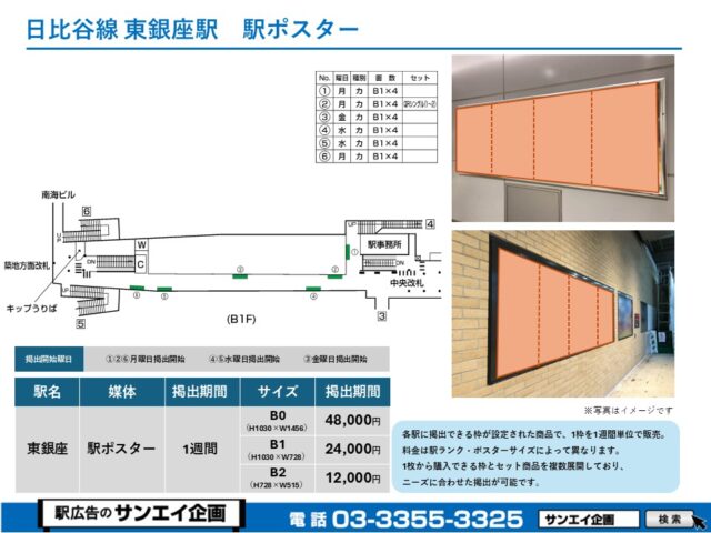 この度は、東京メトロ日比谷線 東銀座駅の駅貼りポスター(駅に貼るポスター)のご案内です。