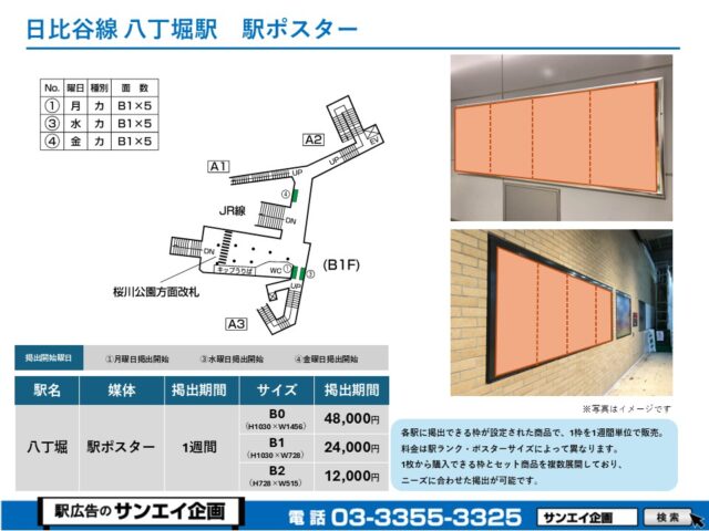 この度は、東京メトロ日比谷線 八丁堀駅の駅貼りポスター(駅に貼るポスター)のご案内です。