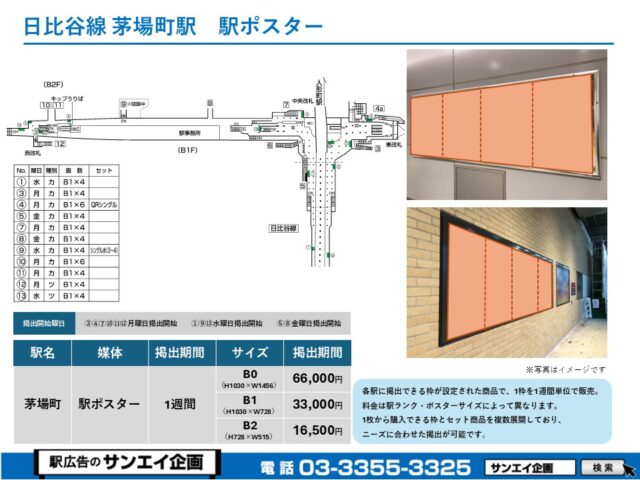 この度は、東京メトロ日比谷線 茅場町駅の駅貼りポスター(駅に貼るポスター)のご案内です。